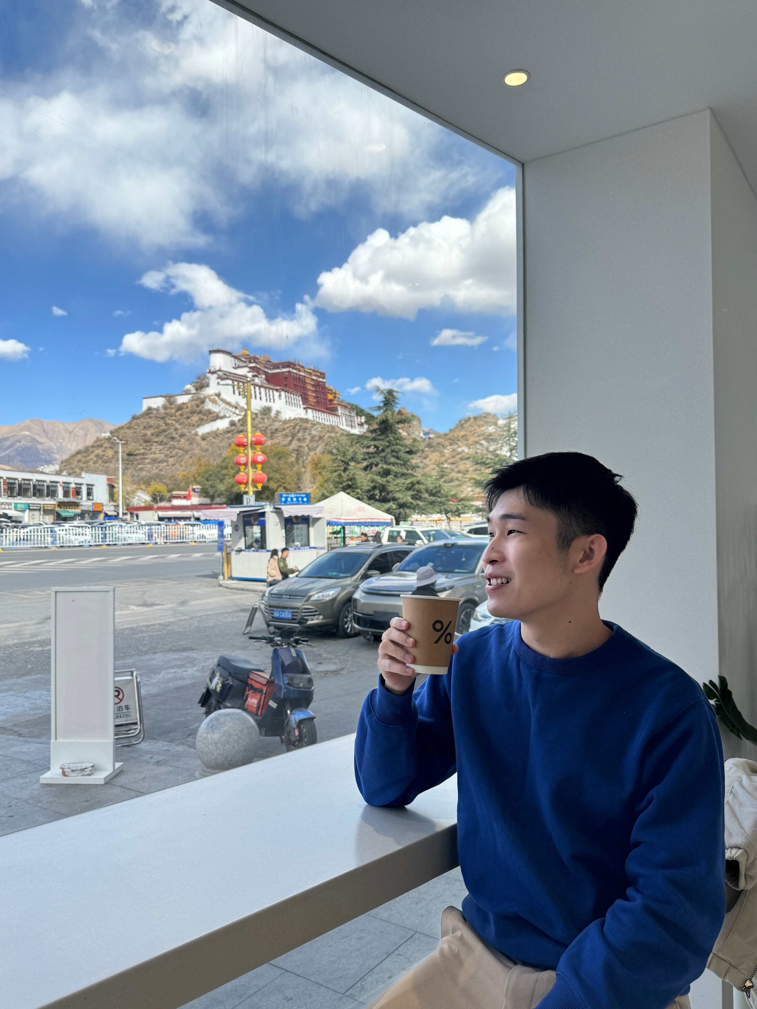 Me sipping coffee in Tibet